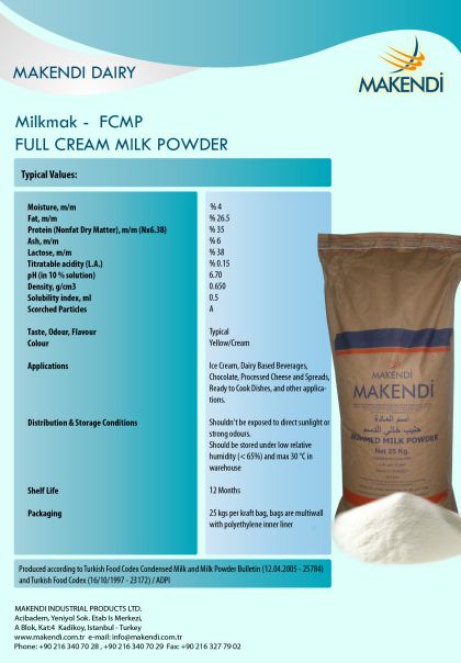 Milk powder 26% fat. Dry powder obtained by evaporating full cream milk; the milk is treated with heat as a part of a process that has at least the same effects as pasteurization; this takes place while the milk is still in liquid form, before or during manufacturing.