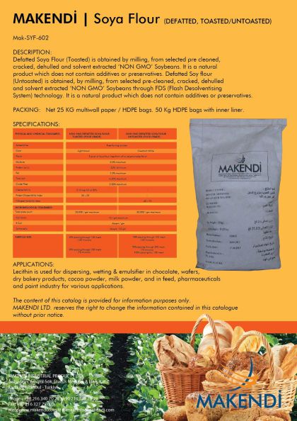 Edible full fat soya flour is obtained from clean, sound, healthy soybeans by a process of cracking and dehulling, followed by either cooking , drying and grinding or by extrusion, cooking and grinding.