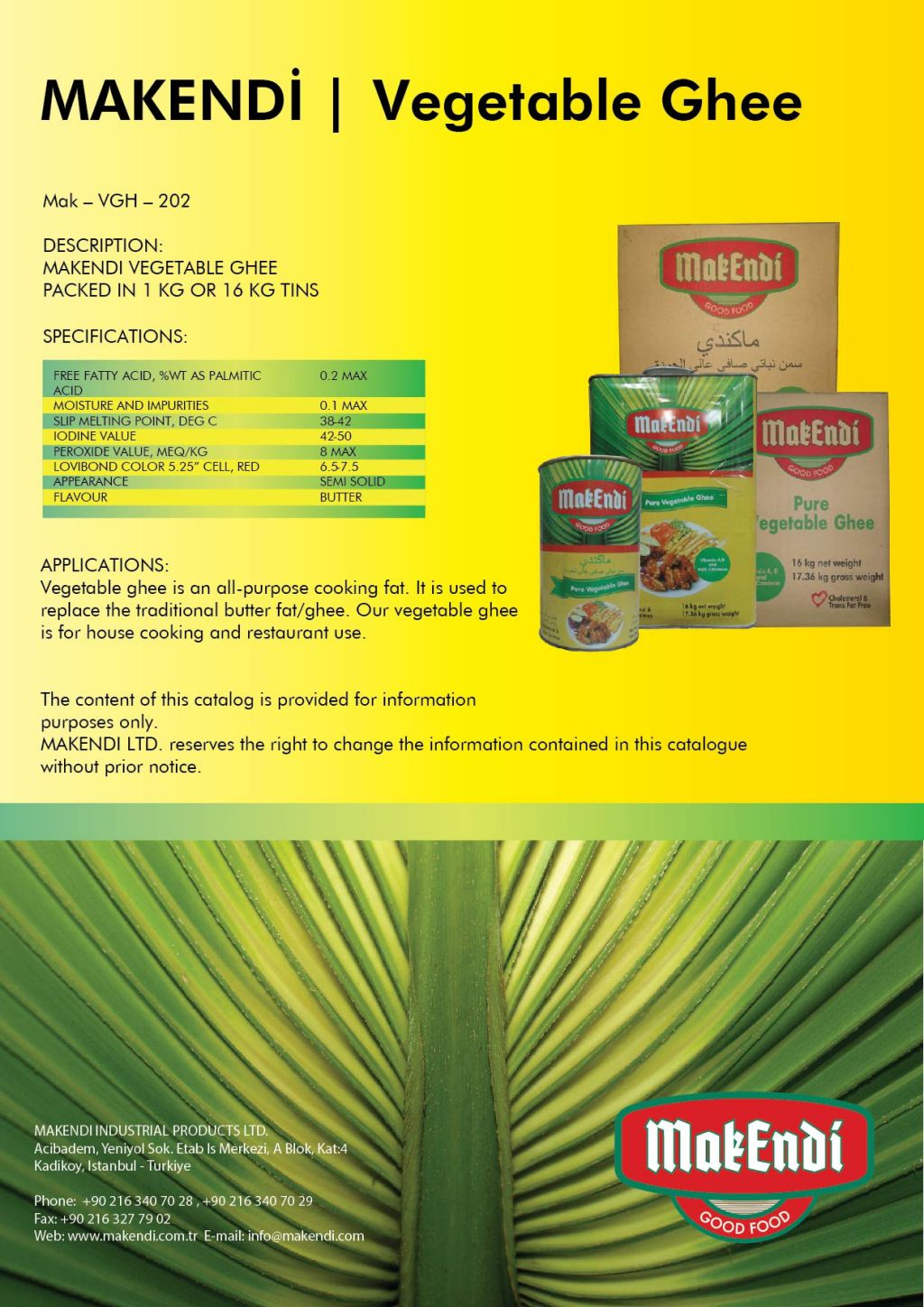 Vegetable ghee is an all-purpose cooking fat. It is used to replace the traditional butter fat/ghee. Our vegetable ghee is for house cooking and restaurant use.